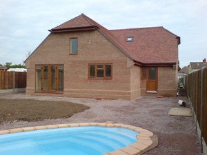 Another property built under contract to the exact specification of the land-owner, Bunyan Cottage was completed in August 2007. This 2-bedroomed bungalow incorporates attic trusses to allow the owners to extend the house to a 4-bedroom chalet bunglaow as required. External works incorporated a swimming pool constructed by the owners in advance of the house construction.