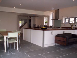 Working under a contract for the owners of this Grade II listed thatched cottage, we added a large extension to the rear elevation and built a new garage with studio office above. The contemporary design of the scheme was created by the owners in association with their architect, Richard Onslow. The project features floor to ceiling glazed windows, metal and stone spiral staircases and many other modern touches that compliment and enhance the character of this historic building.